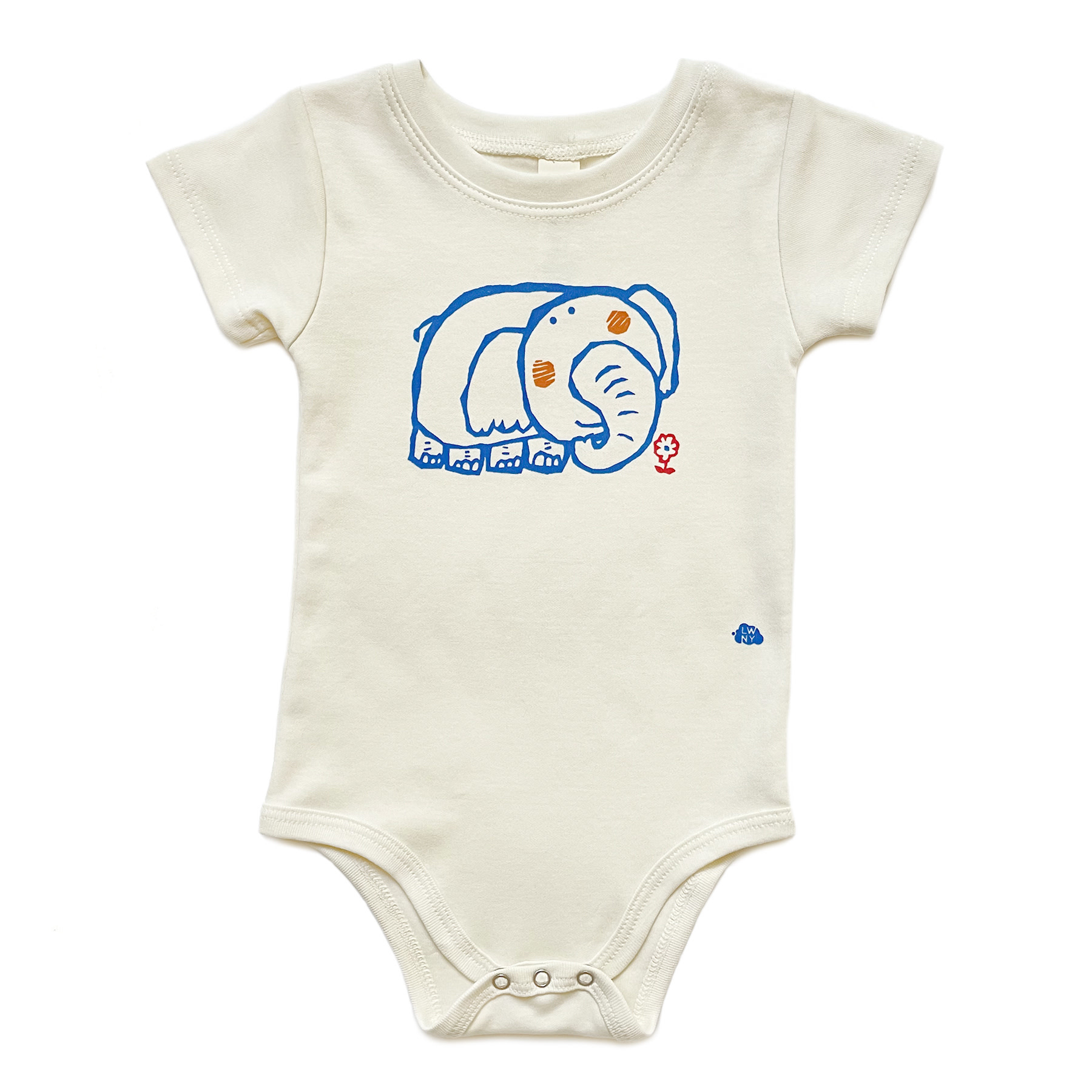 Elepnat Organic Onesie Size 6m: Cotton. Machine washable. Line dry. Made in USA.