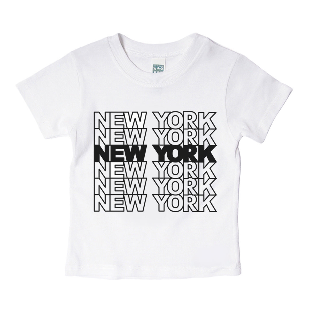 NEW YORK Tile Tee 6m: Our tribute to the iconic New York stacked "Thank You" shopping bag. 100% Cotton. Wash inside out in cold water. Tumble dry low or line dry. Do not bleach. Designed and made in NYC.