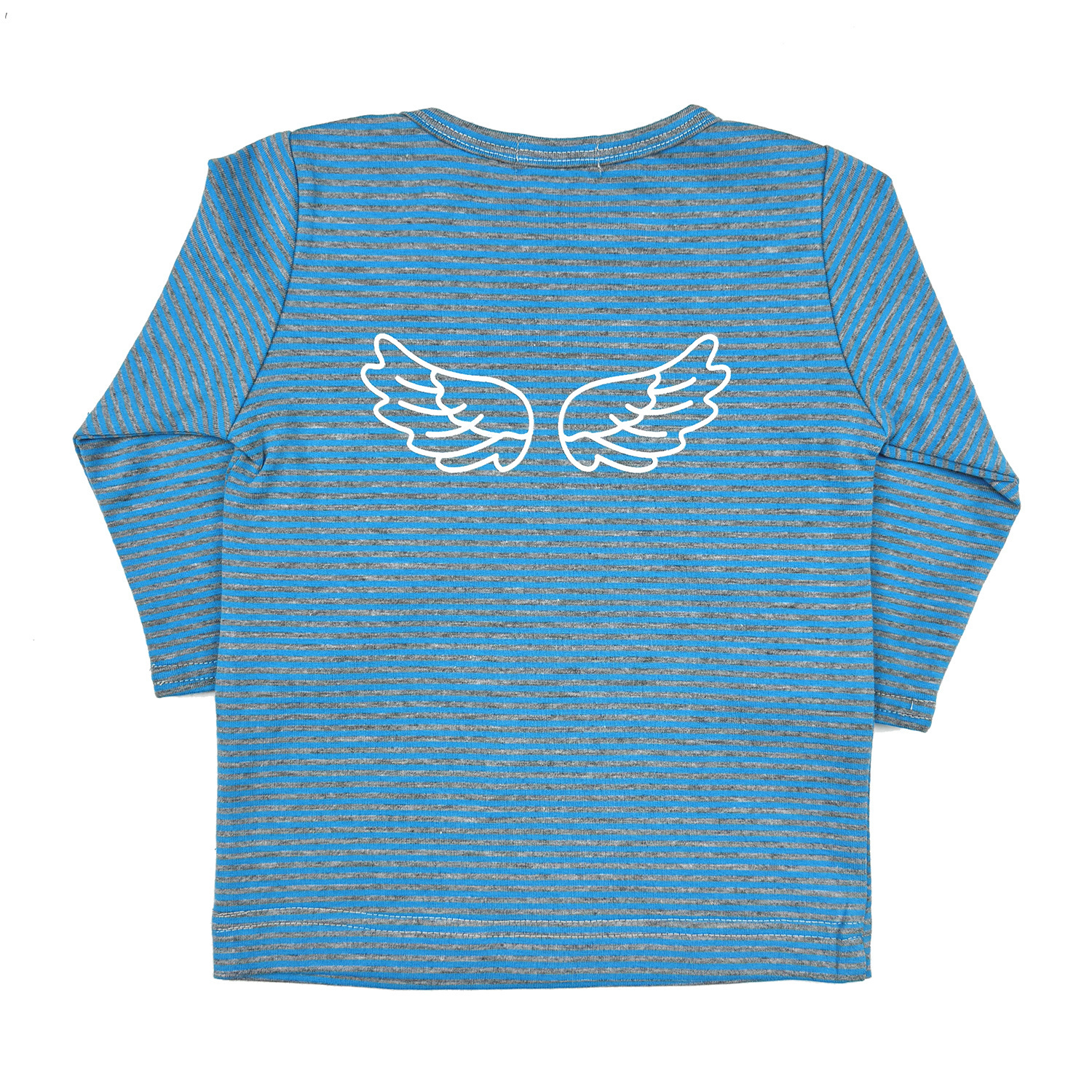 Wings Blue Grey Stripes Playset 3-6m: Long sleeve pocket tee with wings design on the back, and leggings set. Cotton jersey blend. Machine wash in cold. Tumble dry low.