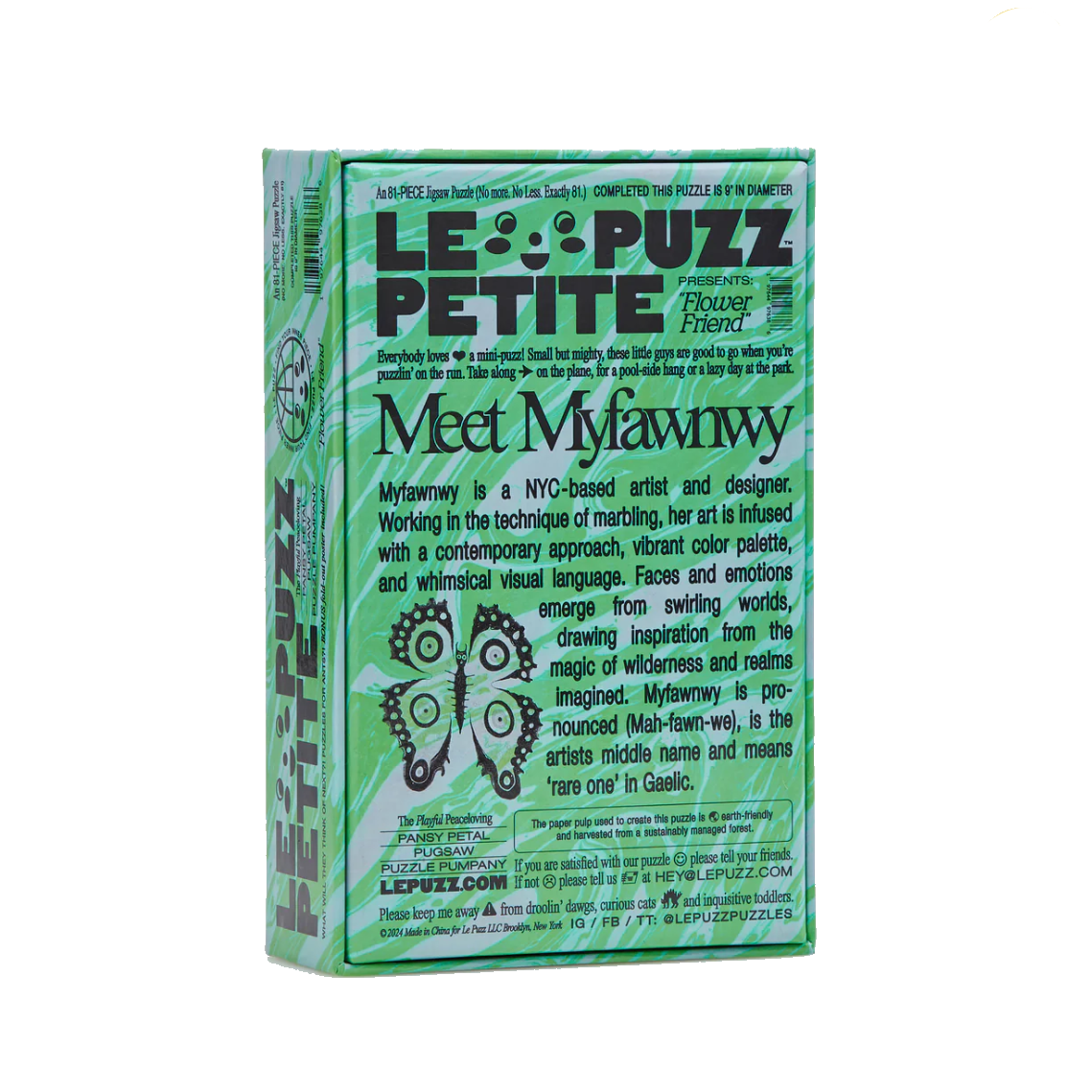 Completed, the mini puzzles are 9" in diameter. The mini box is 7.125 x 4.5 x 2 inches.