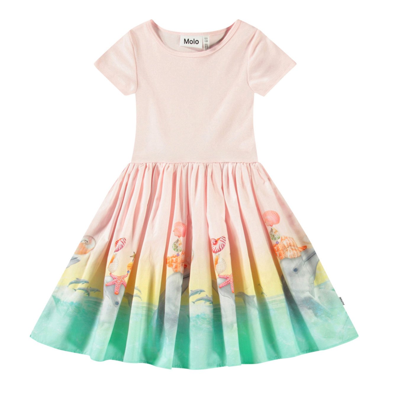 • Short-sleeved light purple dress made of organic cotton with a fitted ribbed jersey top and poplin skirt. The dress has a regular fit.